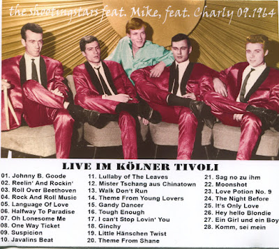 Die Linernotes zu dieser CD sind etwas chaotisch, da sollte vielleicht noch einmal nachgearbeitet werden, aber es scheint mir, als seien The Shooting Stars Andy Marks, lead guitar, Klaus Schmitz, rhythm guitar, Michael Rogatti, bass, und Bernd Lauruschkat, drums, gewesen, und bei den ersten Songs auf dieser CD eben Michael Kogel. Dann macht (ab #12 auf der CD) Charly Stammer für eine Reihe von Titeln den Leadsänger …wenn die Band nicht gerade ihren Interessen an der Instrumentalmusik frönt, was sie oft - meistens kompetent - tut. Allerdings hätte mich schon vor 1964 Titel wie “Little Hänschen Twist“ eher abgeschreckt. Wenn der Charly dann mal darf, macht er eine gute Beatles-Figur. Seine Sternstunde hat er bei “Tough Enough“ – das bringt er glashart. Wunderbar! 10 points out of 10.